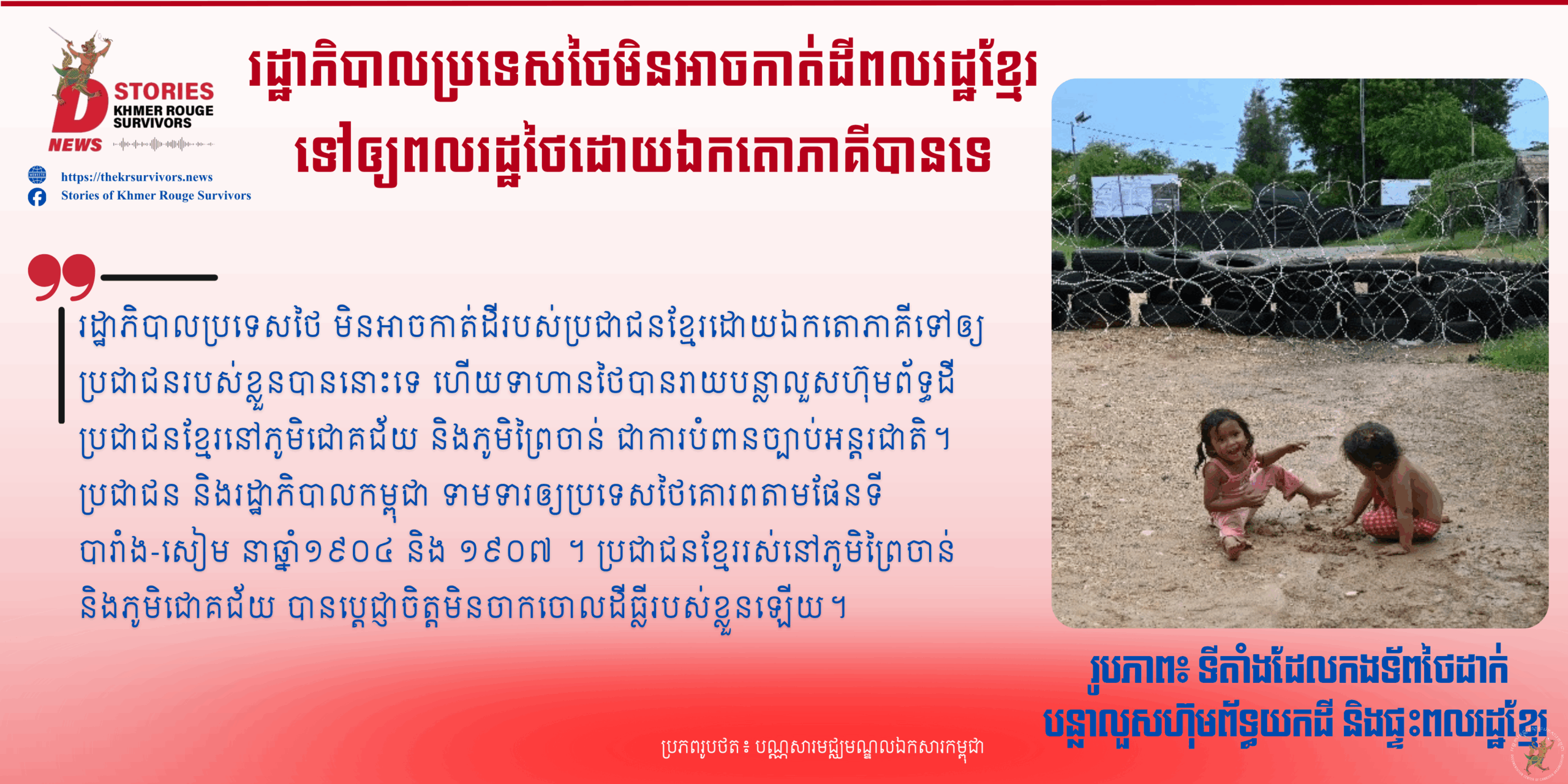 រដ្ឋាភិបាលប្រទេសថៃមិនអាចកាត់ដីពលរដ្ឋខ្មែរទៅឲ្យពលរដ្ឋថៃដោយឯកតោភាគីបានទេ