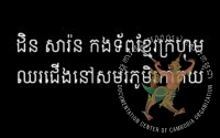 [1] ឯកសារលេខ KCI០០៧៨ បទសម្ភាសន៍ជាមួយ គង់ កោលិនី នៅភូមិខ្ចៅ ឃុំខ្ចៅ ស្រុកកងមាស ខេត្តកំពង់ចាម, សម្ភាសន៍ដោយ ឡុង ដានី នៅថ្ងៃទី១៥ ខែមិនា ឆ្នាំ២០០៣,ចម្លងចេញពីកាសែតដោយ៖ អ៊ីសាឧស្មាន បណ្ណសារមជ្ឈមណ្ឌលឯកសារកម្ពុជា