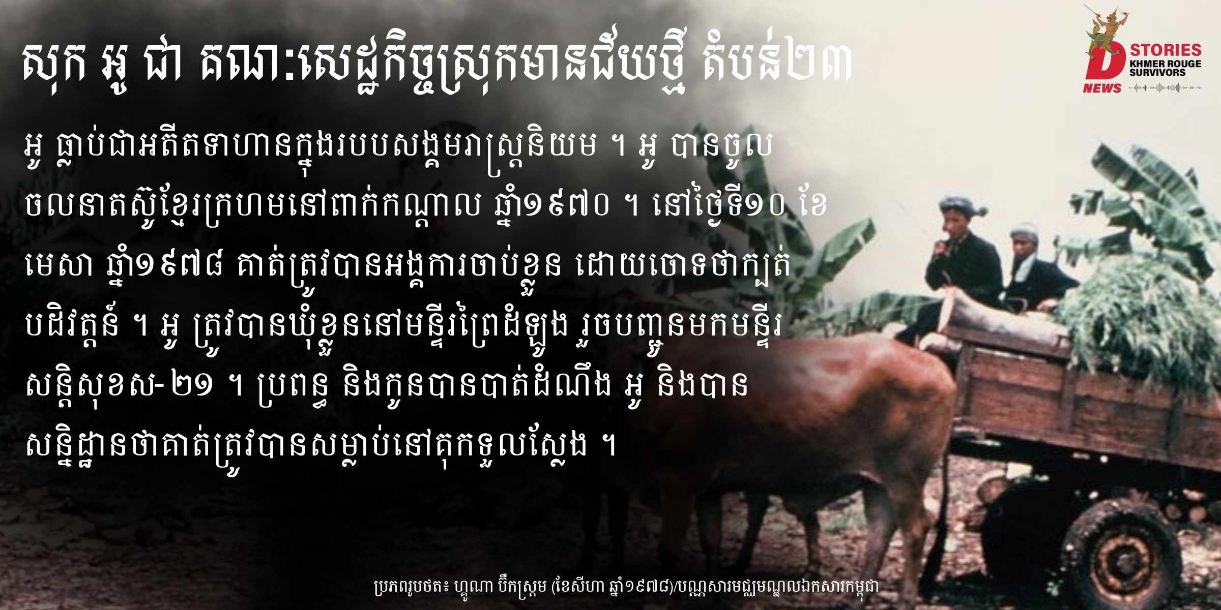 [2] SVI0015, សុក អូ មានស្រុកកំណើតនៅភូមិបឹងកែក ឃុំដូនសរ ស្រុកមានជ័យថ្មី ខេត្តស្វាយរៀង។ បទសម្ភាសន៍របស់ ផាន់ សុជា ជាមួយ ស្រី ផេង ត្រូវជាប្រពន្ធរបស់សុក អូ កាលពីថ្ងៃទី០១ ខែសីហា ឆ្នាំ២០០៥, ឯកសារចំនួន២៩ទំព័រ, មជ្ឈមណ្ឌលឯកសារកម្ពុជា។