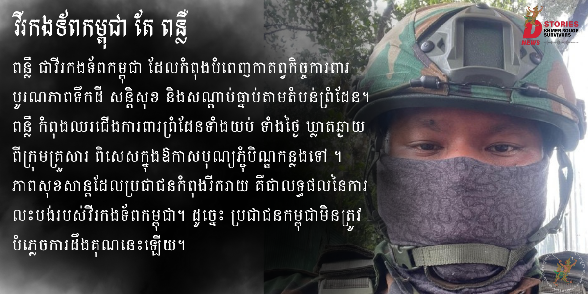 ការលះបង់នេះមិនមែនជារឿងងាយស្រួលឡើយ។ នៅពេលដែលយើងកំពុងទៅវត្ត ឬធ្វើពិធីជប់លៀងនៅតាមផ្ទះ, ដំណើរកម្សាន្ត ប៉ុន្តែវីរកងទ័ពរបស់យើងកំពុងប្រឈមនឹងកម្ដៅថ្ងៃ, ភ្លៀង ខ្យល់ និងភាពលំបាកគ្រប់បែបយ៉ាង ដើម្បីធានាថាប្រទេសជាតិមានសុខសន្តិភាព។ វីរកងទ័ពមិនបានឈប់សម្រាកពីភារកិច្ចរបស់ខ្លួនឡើយ។ ភាពស្ងប់ស្ងាត់ និងសន្តិសុខដែលយើងកំពុងទទួលបាននាពេលបច្ចុប្បន្ននេះ គឺជាលទ្ធផលនៃការលះបង់របស់វីរកងទ័ពរបស់យើង។